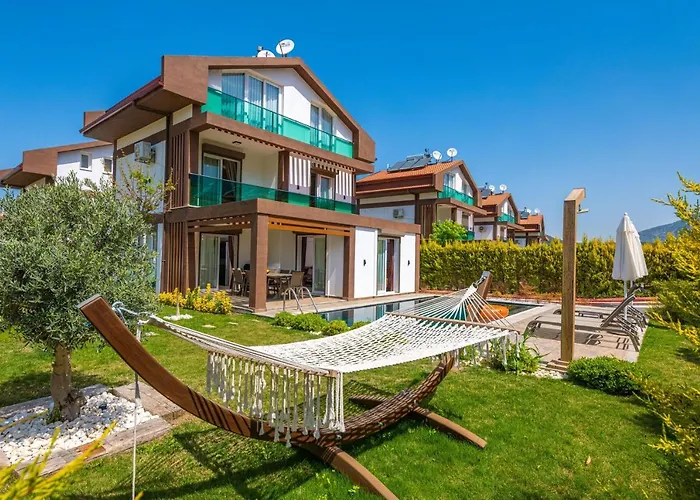Nestled in the idyllic Hisarönü region of Ölüdeniz, Villa Mia redefines luxury living with its stunning design and top-notch amenities. This sumptuous retreat is located a mere 70 km from Dalaman Airport, making your arrival as hassle-free as your stay will be. The villa boasts a serene ambiance perfectly balanced with modern conveniences, ensuring every moment spent here is one of pure relaxation. The villa's concierge service elevates the experience by offering personalized attention, whether you wish to explore local attractions or arrange transportation. Immerse yourself in the region's natural beauty, as Villa Mia stands as an ideal base for excursions into the vibrant landscapes of Ölüdeniz. When it comes to location, Villa Mia is perfectly positioned for both tranquility and adventure. Its proximity to the stunning Ölüdeniz beaches and the vibrant charm of the local village allows for a blend of relaxation and exploration. For those arriving via air, the ease of reaching this luxurious sanctuary from Dalaman Airport ensures that your holiday starts the moment you land.